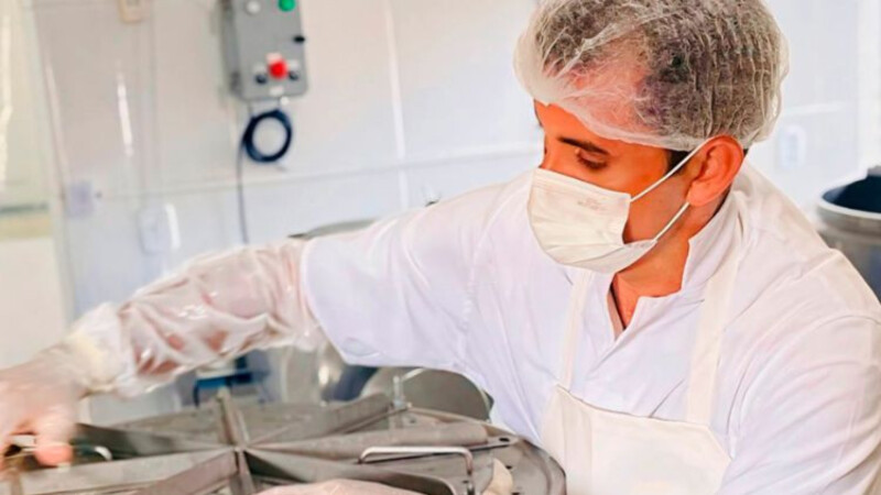 Ele explica que a produção do queijo gigante mobiliza toda a equipe. “Paramos um dia da nossa produção só para o queijo. Selecionamos os leites, fazemos análise, seguimos para a pasteurização, que é fundamental, depois para a coagulação e moldagem. Todo o processo é feito com muito cuidado, higiene e carinho. O tempo estimado de maturação é de 22 dias”.