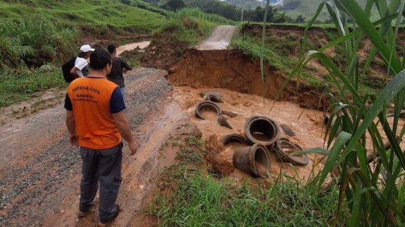 A Estrada da Turma (Trapiche-Óleo) foi interditada pela Secretaria Executiva de Defesa Civil de Macaé na tarde desta terça-feira (24). A medida foi adotada após a via sofrer erosão com o aumento do volume do rio, causado pelos acumulados significativos de chuvas nos últimos dias que atingem principalmente a região serrana do município.